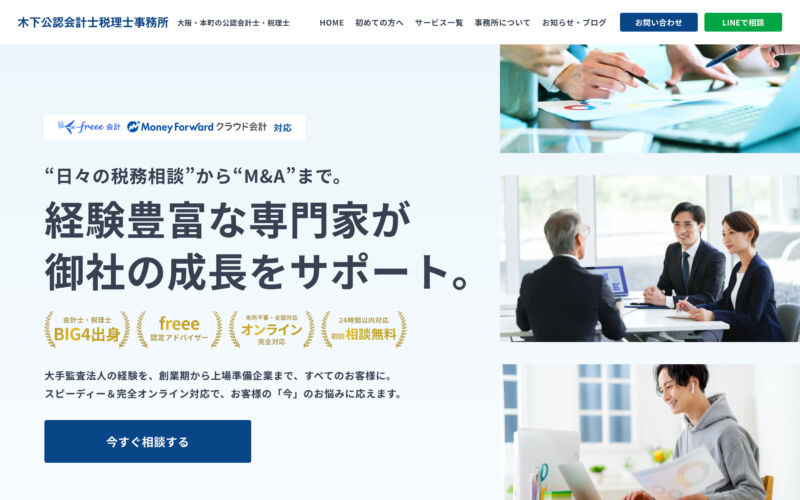 大阪・本町の公認会計士・税理士事務所のコーポレートサイト。BIG4出身の専門性の高さを表現。