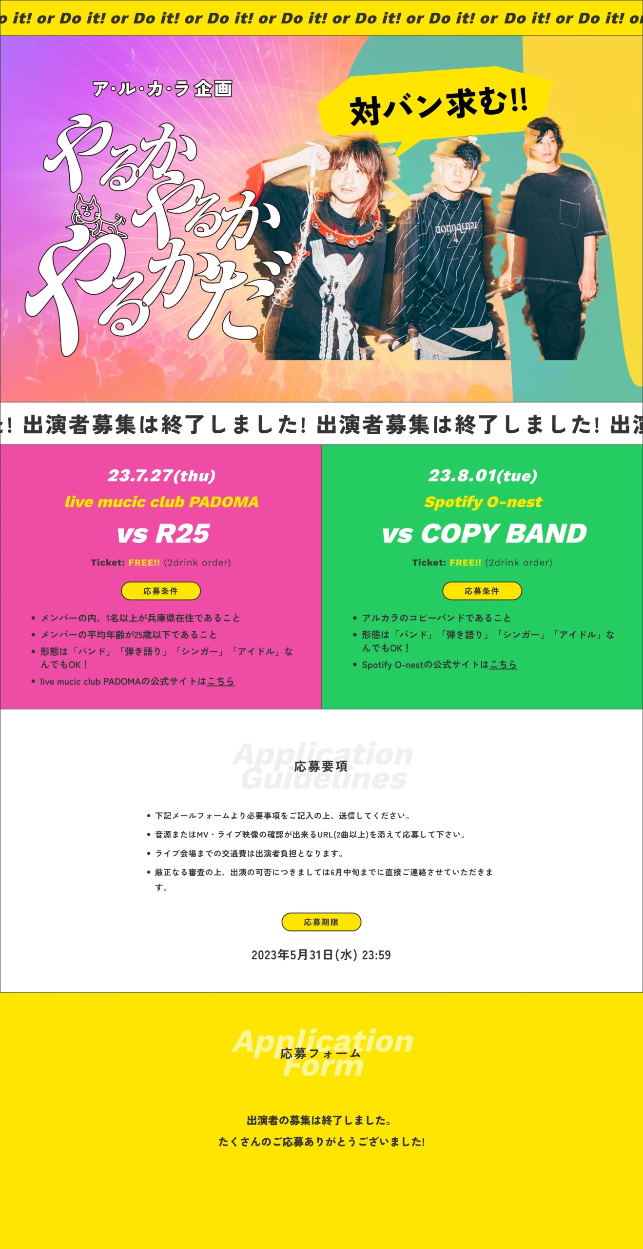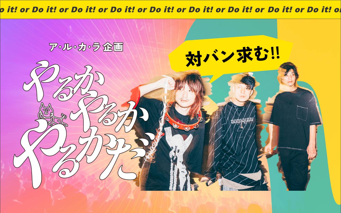 ロックバンド「アルカラ」のイベント「やるかやるかやるかだ」特設サイトを制作しました。