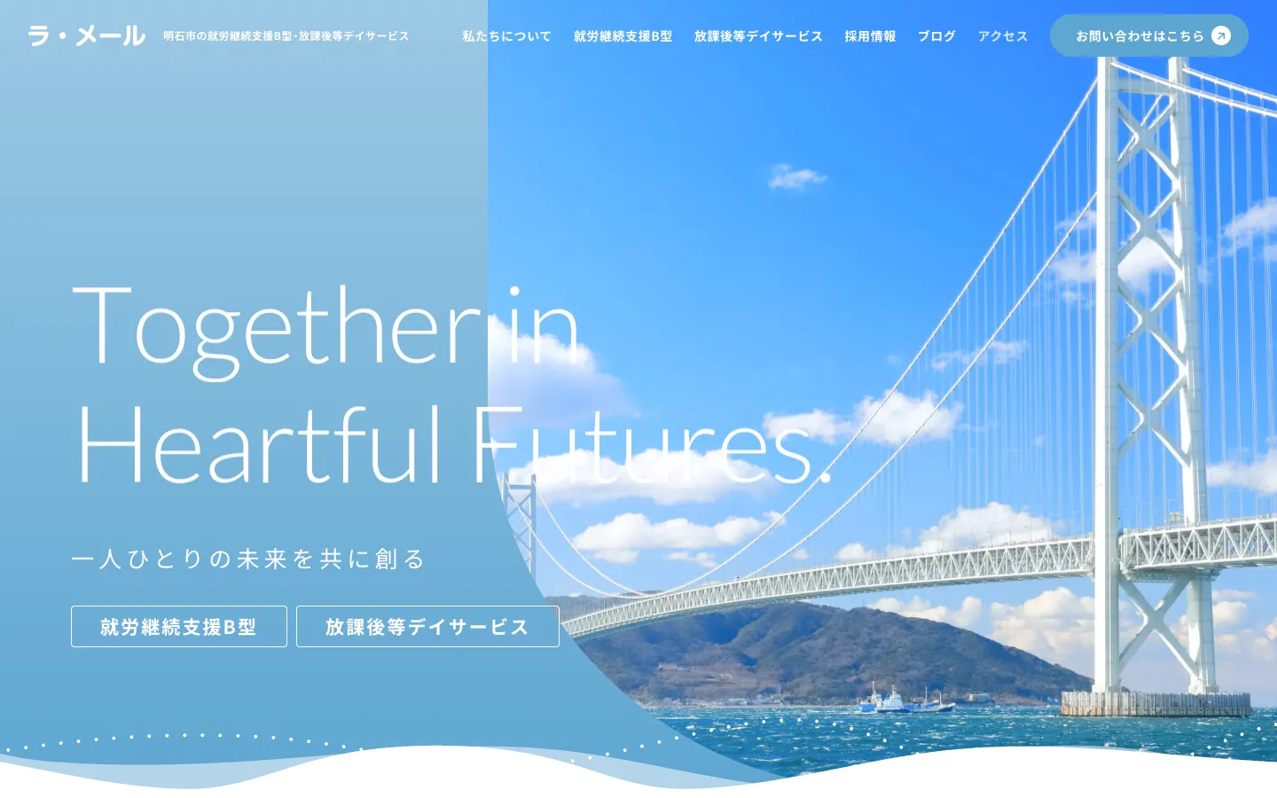 明石市の福祉事業所のサイト。利用者と家族に安心を届けるデザインに。
