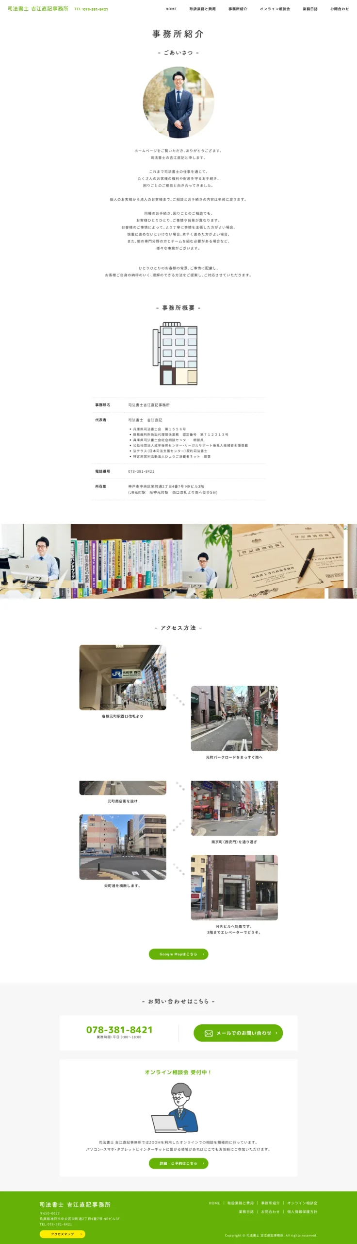 神戸の「司法書士 吉江直記事務所」のウェブサイトを制作しました。