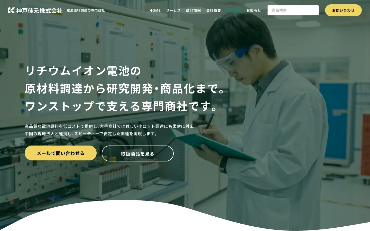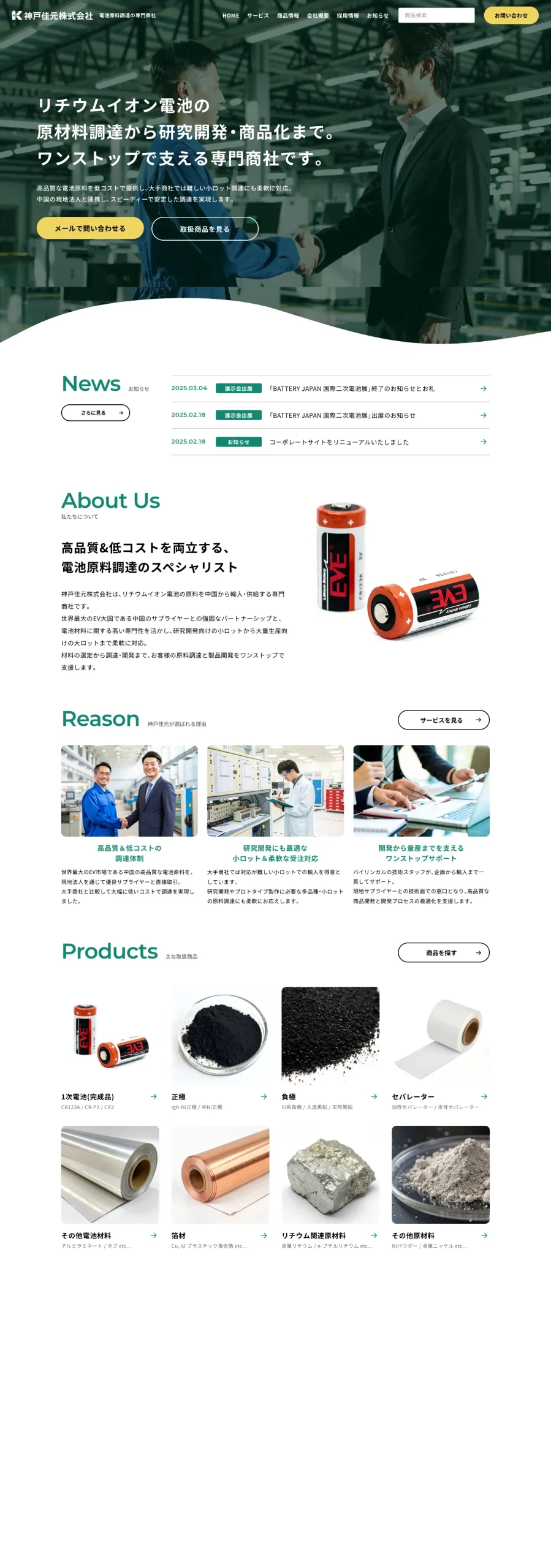 リチウムイオン電池原料の輸入・供給を行う専門商社「神戸佳元株式会社」のウェブサイトをリニューアルしました。