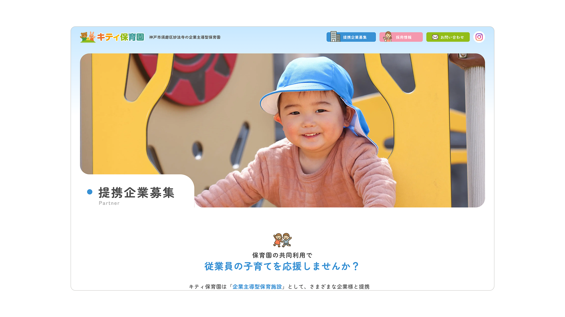 神戸市須磨区の企業主導型保育園のサイトリニューアル。現地取材で園の温かさを表現し、更新しやすい運用体制も構築。