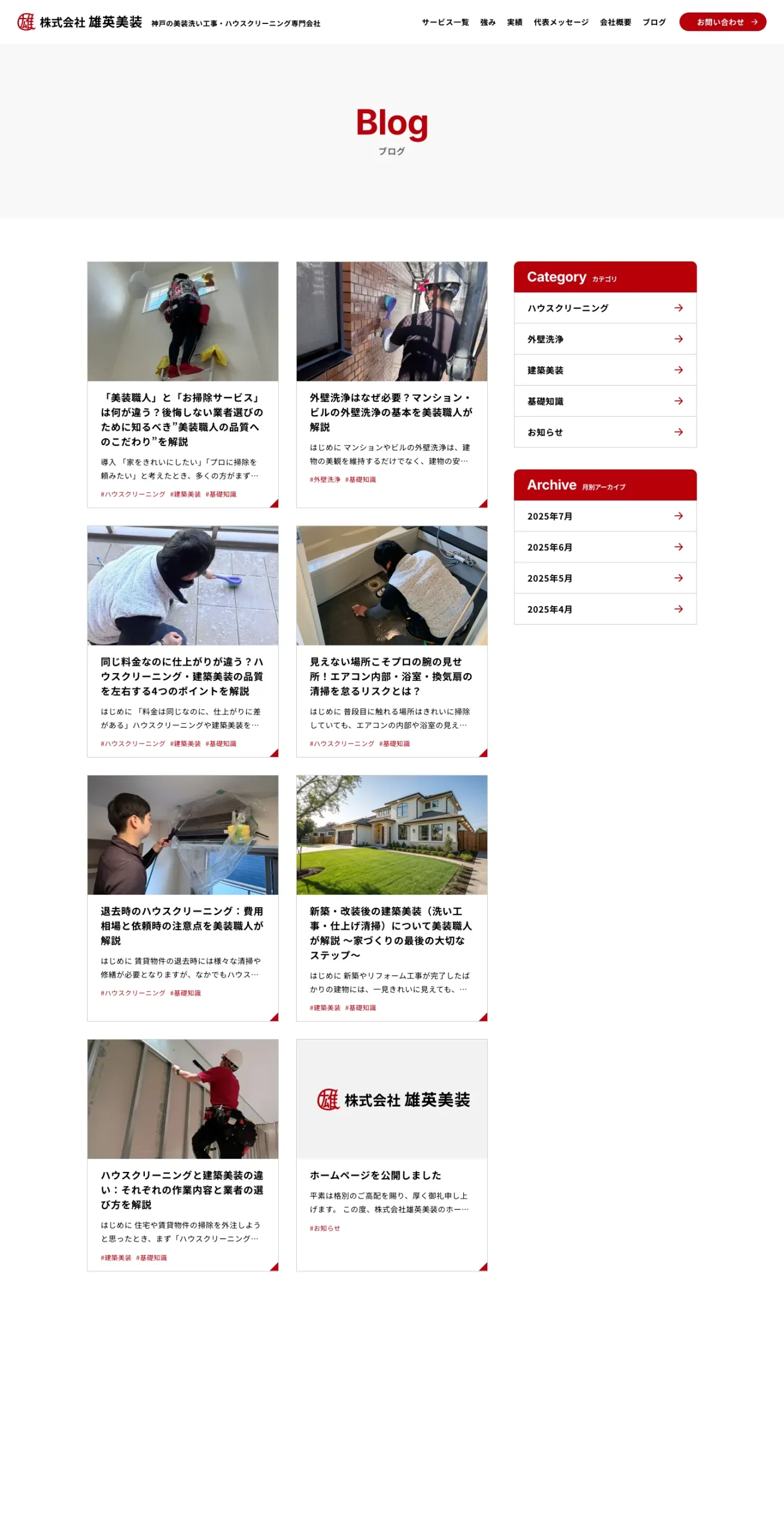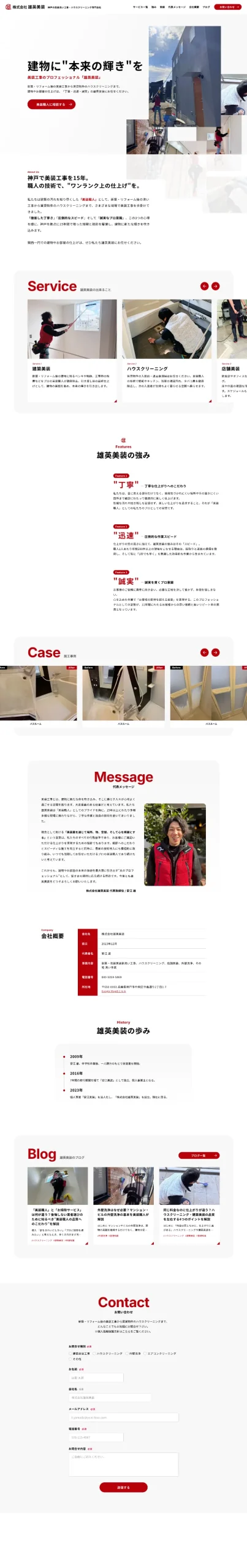建築美装・ハウスクリーニング会社「雄英美装」のコーポレートサイトを制作しました。